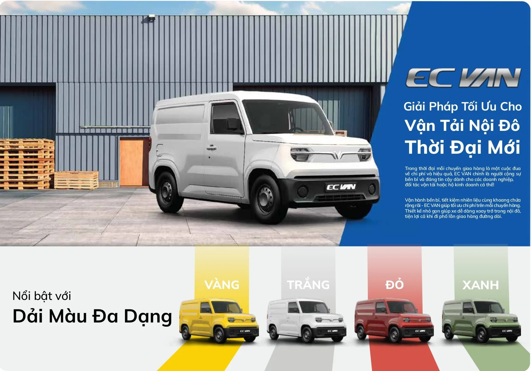 VinFast công bố dòng xe chở hàng cỡ nhỏ EC Van (E-City Van) sáng 13/5, mở đầu cho xu hướng thuần điện trong ngành vận tải hàng hóa. Với tải trọng hơn 600 kg, mẫu xe này hướng đến nhóm khách là các doanh nghiệp vận tải, hộ kinh doanh, vận chuyển hàng hóa trong đô thị.