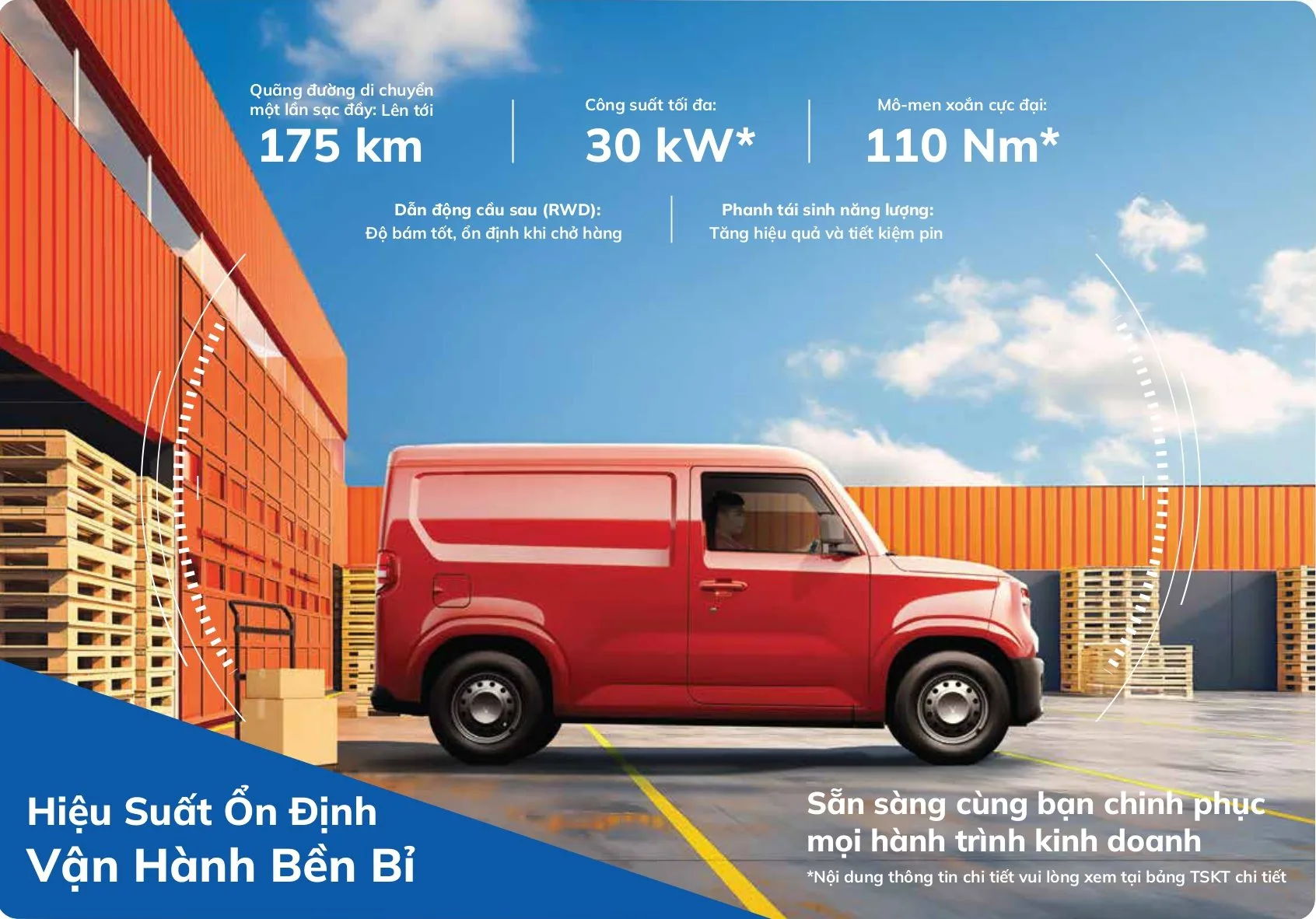 VinFast EC Van được trang bị động cơ điện có công suất tối đa 40 mã lực, mô-men xoắn cực đại 110 Nm - thông số tương đương với VF 3 cùng "nhà". Bộ pin 17 kWh trên xe cho phép di chuyển 150 km sau mỗi lần sạc đầy, tốc độ tối đa 75 km/h.